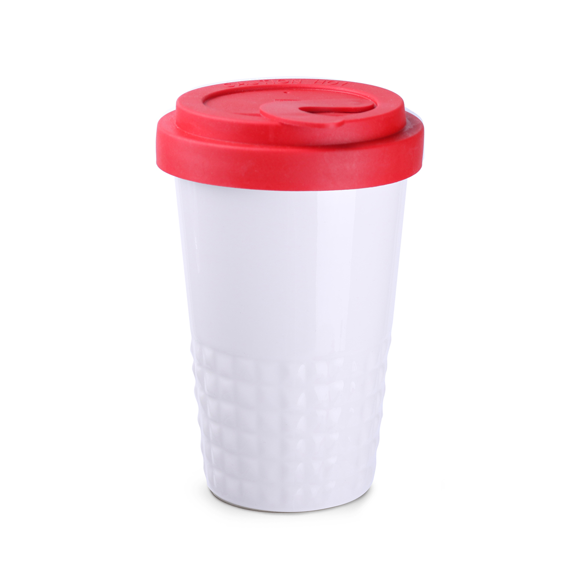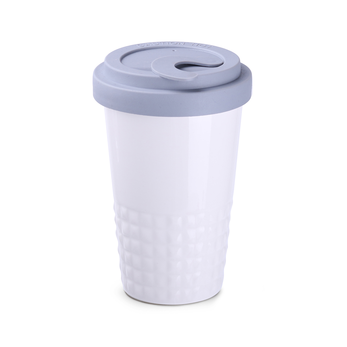 Nowość na rynku ceramiki reklamowej. Subtelne wykończenie dolnej części kubka w formie symetrycznych wypustek. Porcelanowy kubek dwuścienny, zapewniający doskonałą izolację ciepła. Wyjątkowo szczelna przykrywka. Model dla aktywnych. Przykrywka dostępna w następujących kolorach: biały, pomarańczowy 021C, szary Cool Gray 7, granatowy 294C, brązowy 4695C, czarny, różowy 4064C, niebieski 2144C, eucalyptus 5493C, desert sand 2310C